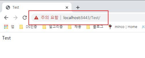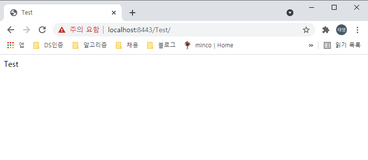 이제 크롬을 재기동 후 "https://localhost:8443/Test/" 로 접속하면 위험페이지 없이 원하는 index.html 페이지가 표시되는 것을 확인 할 수 있습니다.
