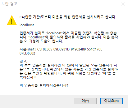 CN=localhost, OU=Unknown, O=Unknown, L=Unknown, ST=Unknown, C=Unknown이(가) 맞습니까?
