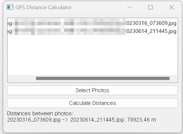 - 사진 간의 거리와 파일 이름을 화면에 표시.